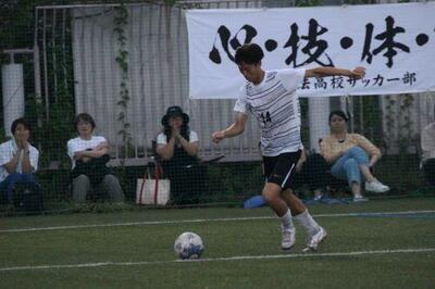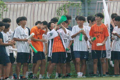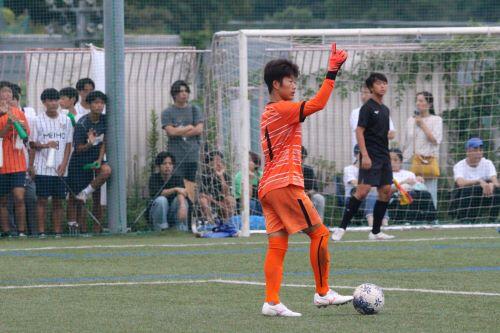 前半から明法ペースでボールを保持しながら試合に入れました。後半押し込まれる場面が増えましたが、相手に決定的なシュートを打たせることなく試合を進めることができました。クロスやコーナーキックから再三チャンスを演出しますが、決定的な得点に至れず。同点のままPKに突入。