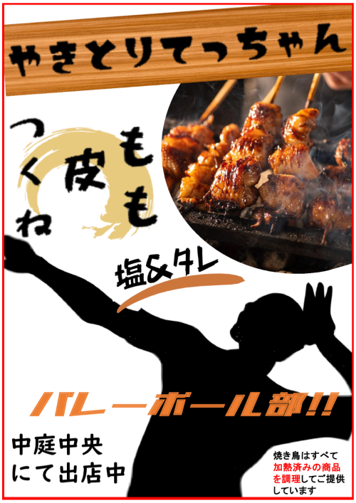 バレーボール部は9月27日(土)・28日(日)に開催される明法祭において、男子チーム・女子チーム合同で、焼き鳥を販売いたします。スチーム済の焼鳥を焼いて販売いたします。ぜひ、ご来店下さい。その際に、バレーボール部の活動についてご興味のある受験生・保護者の皆さんにはご説明もさせていただきます。