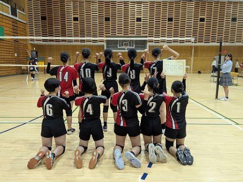 何とも緊張する展開となりましたが、こうした中でも自滅することなく懸命にボールを上げて攻撃し、安定的にサーブを打てたことはこれまでの試合展開とは違い大きく成長できた点でした。特に主力の2年生の攻撃だけでなく、1年生のレシーブ力や安定したサーブもありみんなで勝利できたことは、今後の自信となったことと思います。