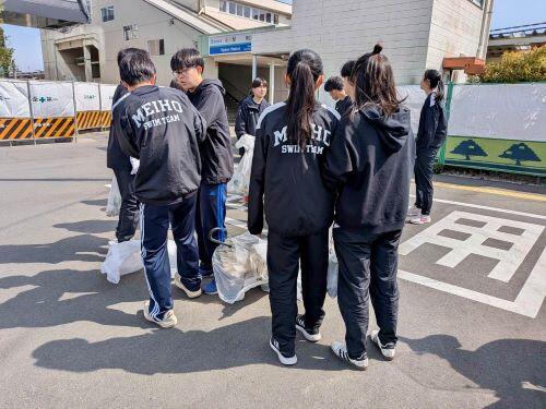 この活動の目的は、日頃より応援してくださっている地域の皆さまへの感謝を表すことはもちろん、試合で100%の力を発揮するためには日々の生活が大切であるという考えに基づいています。自分がやるべきことに一つひとつ真摯に取り組む、その小さな積み重ねが、本番での成果につながると考えています。明法水泳部では、競技面だけでなく、こうした日常の姿勢も大切にしながら今後も活動を続けていきます。