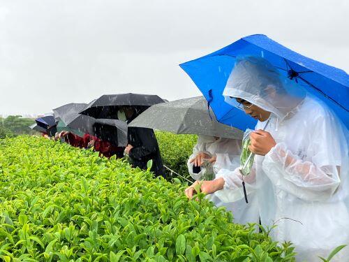 2日目は生憎の大雨の中でしたが、午前中静岡駅周辺を散策、その後お茶摘み体験を行いました。お茶の香りに包まれリラックスしている人が多かったです。