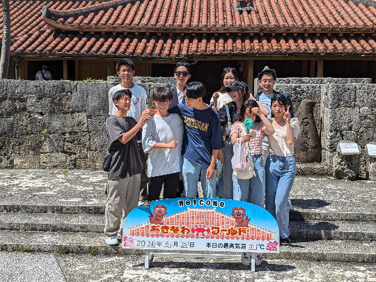 鍾乳洞を出たあとは、自由散策。沖縄の古民家に入って、おいてある三線を引いてみたり、暑さを凌ぐために美味しいフルーツジュースやソフトクリームを食べたり、おみくじを引いたり、体験をしてみたりと、それぞれの生徒が楽しんでいました。