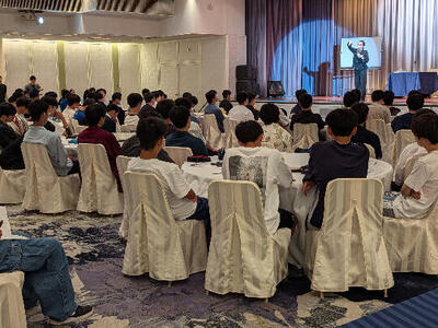 夕食後、ふたたび全員が集合し、沖縄戦の記憶などを共有する平和講話をしていただきました。