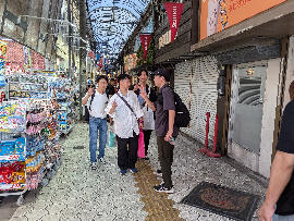 平和学習終了後、バスで那覇に戻り、沖縄県庁のそばで下車。そこからは3時間半の自由散策です。生徒たちはお土産を買ったり、夕食をとったり、楽しく過ごしたようです。ホテルに戻ってきたあとに聞いてみたところ、ステーキやハンバーグ、沖縄焼きそばなどなど、いろいろと食事を楽しんだようです。