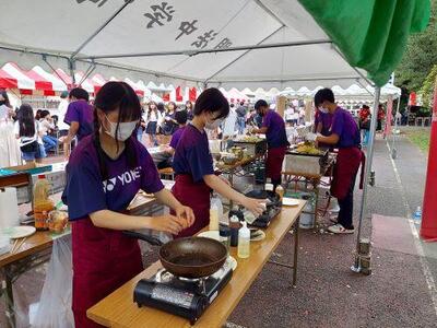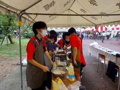 午前中は来校される方も少なめで、各サークルも少しずつ本番慣れしていく感じです。お昼前から校内の賑やかさが増し、生徒たちの動きも洗練されてきます。展示物の説明・調理と販売・誘導や案内、普段は「もてなしてもらう」側ですが、今日は「もてなす」側です。やってみて初めて分かることがあります。