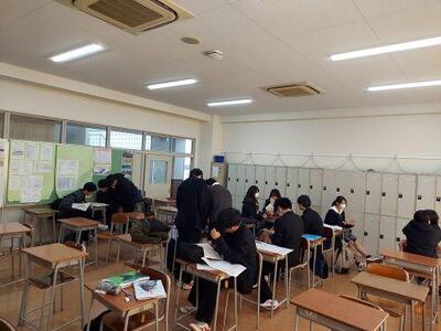 本日、12月11日(水)に期末考査が終了しました。いつものことながら最後の試験が終わった瞬間の生徒の表情には解放感があふれています。14日(土)の答案返却日まで不安を抱えて過ごす人もいるでしょうが、しばらくは勉強のことを忘れてもよい(高3を除く!)と思います。お疲れ様でした。
