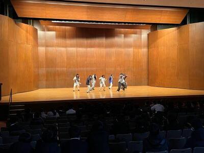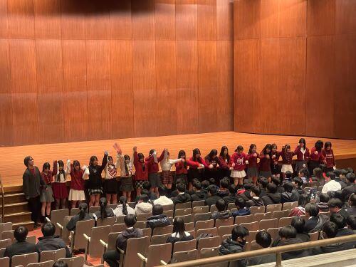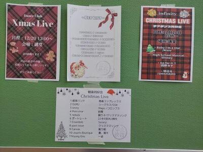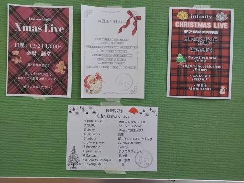 13時から講堂にてダンス、チアダンス、軽音楽の三つの同好会がこれまでの練習の成果を披露する〝Xmas,Live〟が行われます。生徒たちのパフォーマンスはもちろん、工夫された照明や音響、観客席を埋める多くの明法生の熱気とあいまって、2学期のラストを飾るにふさわしい素晴らしいステージになるでしょう。