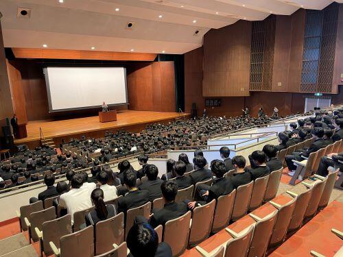 朝、校門を入ってくる生徒たちも心なしかうきうきした表情に見えます。各教室での点呼後に講堂に移動し、終業式に臨みます。校長先生のお話は除夜の鐘のことから始まり、負の感情を打ち消すこと、平常心を大切にすることへと広がりました。途中、冬至・節気について触れる部分もあり、新たな知識を得た生徒も多かったと思います。続いて生徒朝会へと移行し、部活表彰、委員会(公示委員会・選挙管理委員会・生徒会総務)からの連絡がありました。最後に生徒指導部長から二つの注意(交通ルール・生活リズム)と、一つの連絡(落とし物・忘れ物展示会)が伝えられました。落とし物・忘れ物、持ち主のもとに戻るといいですね。
