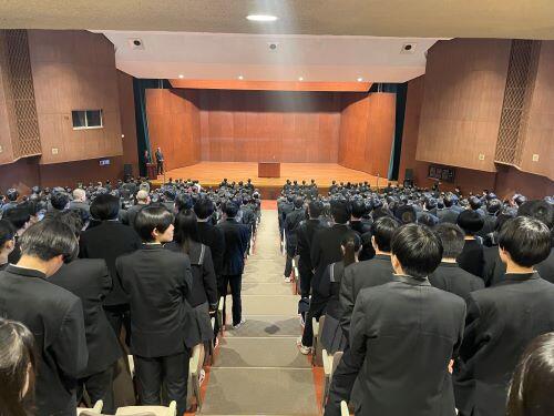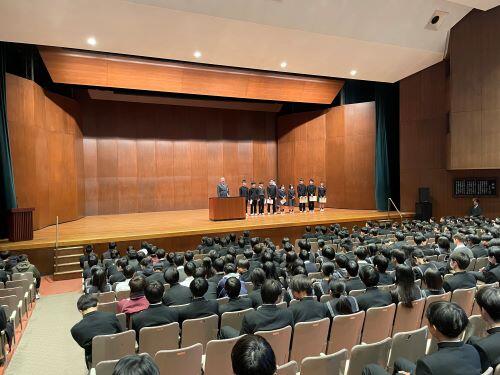 始業式での校長の話は「チームワーク、努力」についての話でした。クラス、委員会、部活動などの集団、これから志望大学へ挑戦する高校3年生には良い刺激、気付きになる話でした。冬休み中の活動での各種種表彰も行ないました。