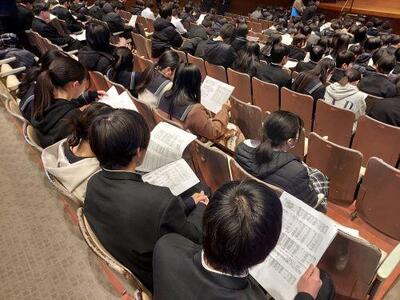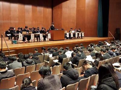 本日4時限目に生徒総会が行われました。主な議題は2024年度生徒会決算についての報告と承認であり、非常に重要な内容です。