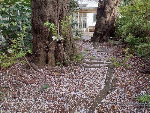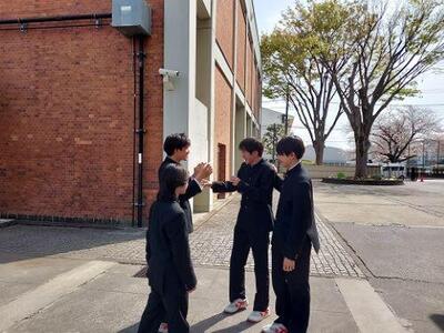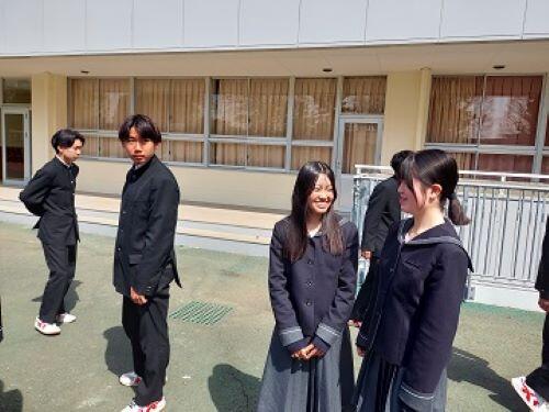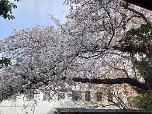本日が2025年度始業式です。さわやかな春の陽射しのもと、生徒たちは時間通りに登校してきました。桜はほぼ満開、少し散り始めていますが、地面に落ちた花びらも風情のあるものです。