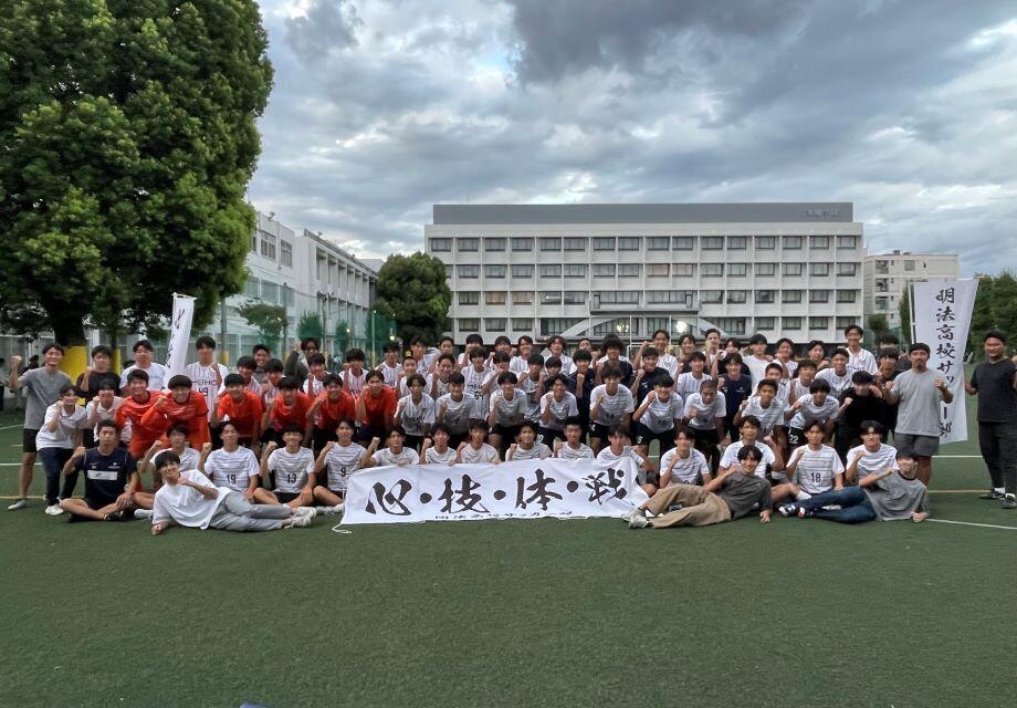 本郷会場は明法の正規サイズサッカーコートより一回り小さいサイズです。前半17分、地の利を活かしてロングスローを放り込み、身体を反転させながら技ありのへディングで先制。後半31分、CKからドンピシャの豪快ジャンプヘッドを叩き込み追加点。その後も相手のカウンターから危ない場面もありましたが、明法DF陣も身体を張った献身的な守備で固く守り、無失点で強豪東高校に完封勝利を収めました。