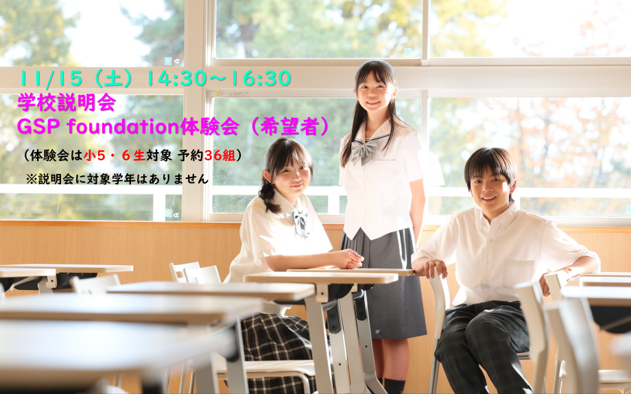11/15(土)GSP foundation体験会・中学校説明会