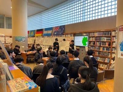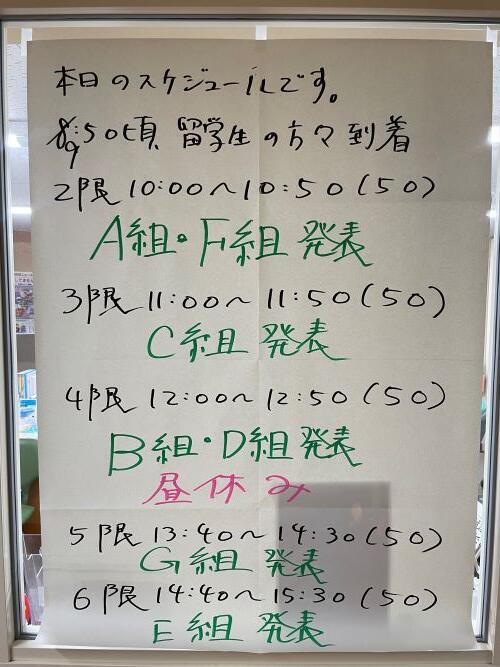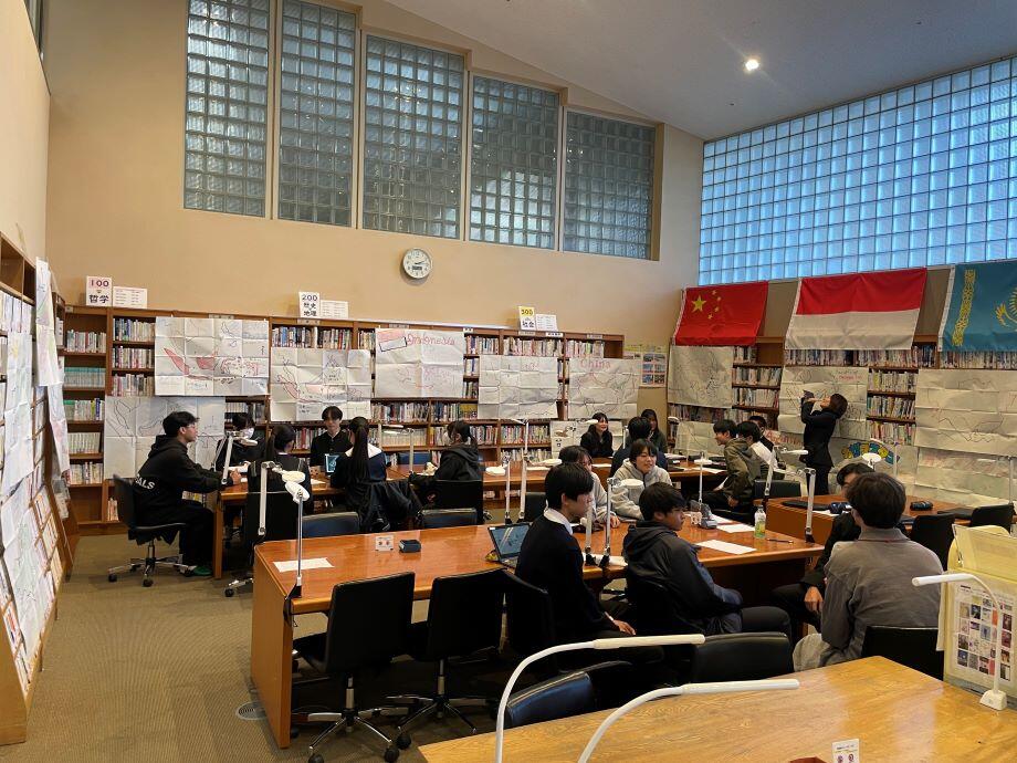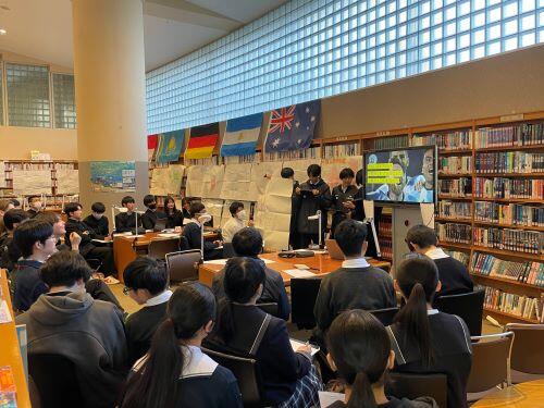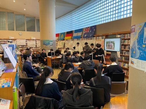 本校では、地理総合が全国の高等学校で必修化される以前から、新宿にある日本語専門学校の方々と交流を持ち、地理の授業で様々な取り組みを行ってきました。その一つが、クラスの生徒をグループ分けして、調べ学習の発表会に留学生の方をお呼びするという取り組みを行ってきました。