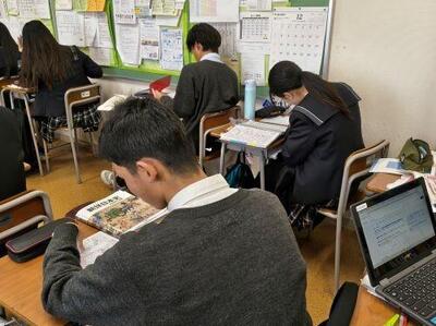 授業は考査だけを視野に入れたものではありません。演習課題に取り組み、グループワークを行い、調査や発表につなげ、幅広く生徒の成長につながるように工夫されています。その上で得点力を向上させる受験対策も十分にこなす、教科担当の腕の見せ所です。明法は中高一貫校なので、大学受験に向けた高校生の授業を行っている教員が、同時に中学生の授業も担当します。これは中学生に大きなメリットをもたらします。また高1レベルで苦戦している生徒に「中学で学んだここを復習してごらん」と具体的なアドバイスをすることもできます。これは高校生にとってとても有益なものとなります。頑張る生徒に負けないように、教員たちもラストスパートをかけていきます。