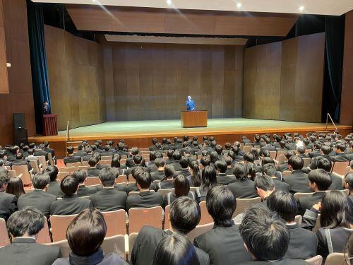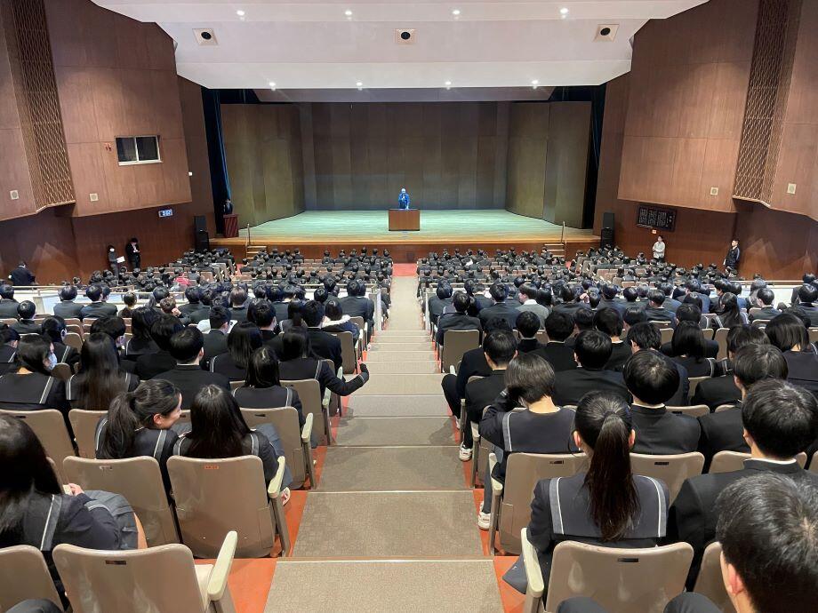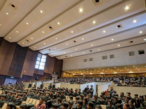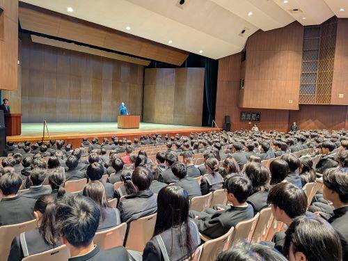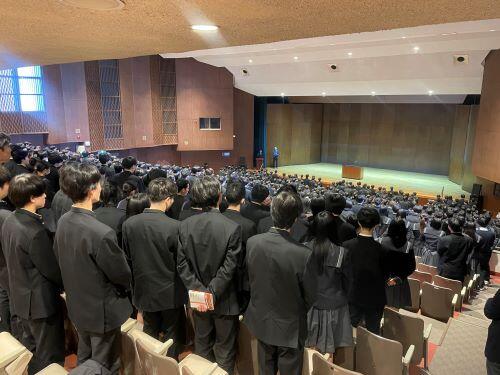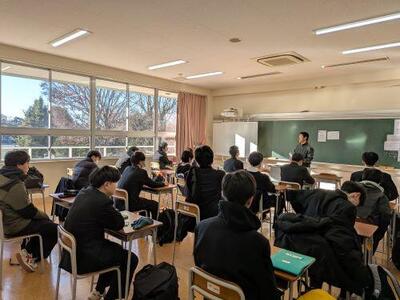 講堂から再び教室に戻ると各クラスでのホームルームです。諸連絡、書類の配付や回収、年頭にあたってのお話、限られた時間を有効に使うように担任は工夫しています。高3では大学に提出する調査書が渡され、一般入試へのカウントダウンが始まります。高2では総合型選抜をテーマにした進路ガイダンスが行われます。中1から高3まで学年の状況によって学習、生活、行事等、どこにポイントを置くかは変わってきます。