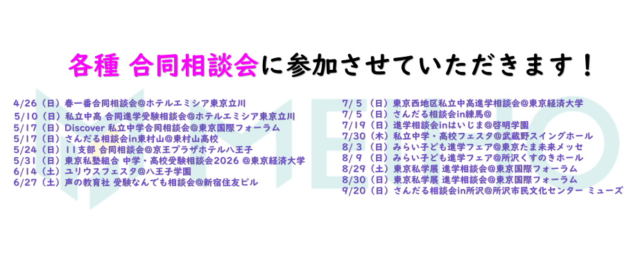 5/31(日)11:00~16:00 東京私塾協同組合 子どもたちとともに歩む中学・高校受験相談会2026 @東京経済大学